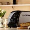 Súčasťou balenia sú aj 2 hnetacie háky, ktoré si poradia s vašim cestom, forma na pečenie s antiadhéznou povrchovou úpravou pre jednoduchú údržbu, odmerky, pohárik, háčik, veko so skleneným priezorom umožňujúcim jednoduchú kontrolu v priebehu prípravy a prehľadný displej so zobrazením stavu prípravy a času.