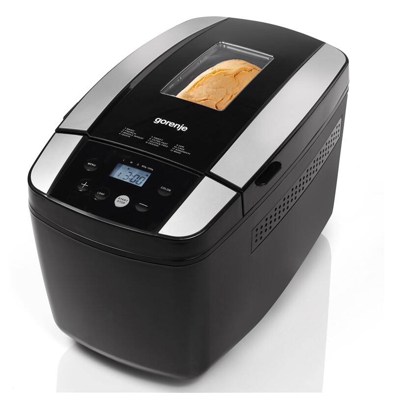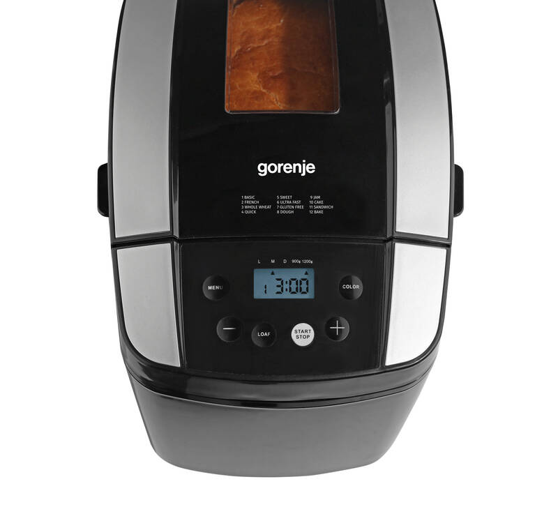 S domácou pekárňou Gorenje BM1210BK s príkonom 800 W nebudete musieť ísť každý deň pre čerstvé pečivo do obchodu. Pripravíte si ho podľa preferencií z pohodlia kuchyne takmer bez námahy. Stačí len pripraviť ingrediencie do nerezovej nádoby na pečenie a prístroj pomocou dvoch metlí automaticky pripraví cesto, nechá ho vykysnúť a následne ho upečie. Môžete si vybrať gramáž bochníka, a to od 900 do 1 200 g, a úroveň zhnednutia kôrky pomocou systému CrustChoice. Informácie ohľadom stavu pripravovaného pokrmu možno sledovať cez kontrolný priezor a na svoju prevádzku produkt upozorňuje pomocou akustického signálu.