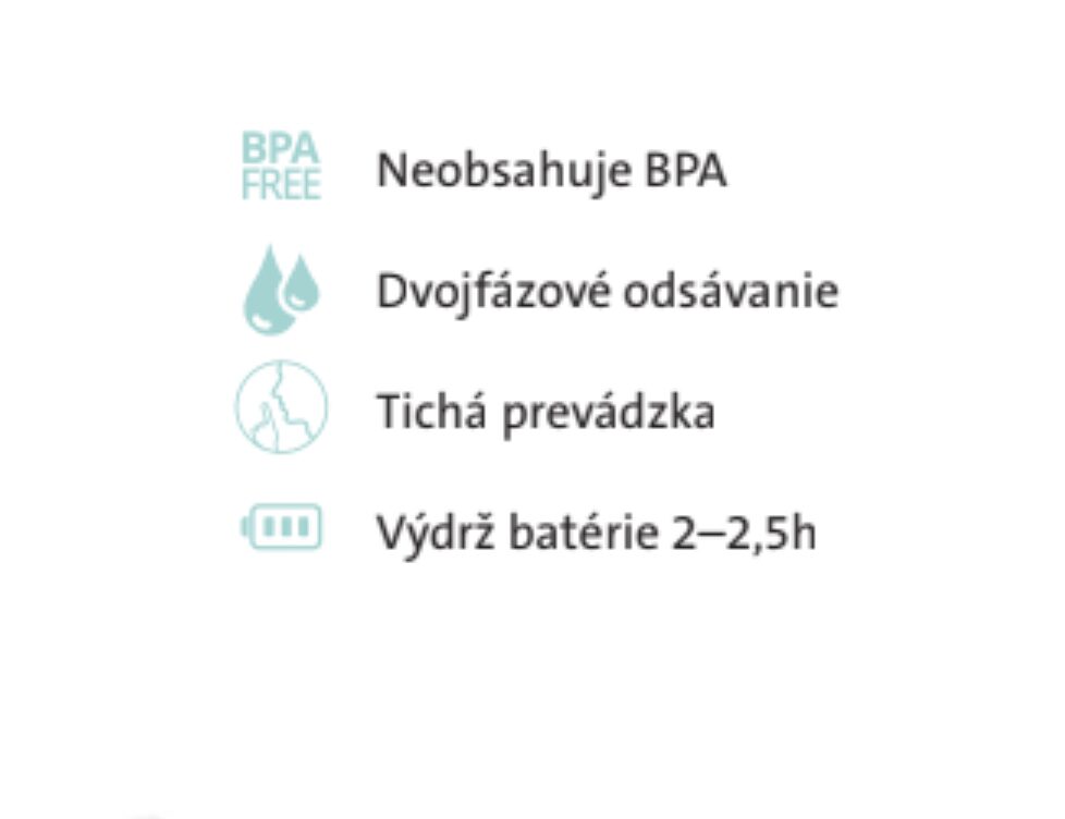 - Rýchle a komfortné odsávanie materského mlieka