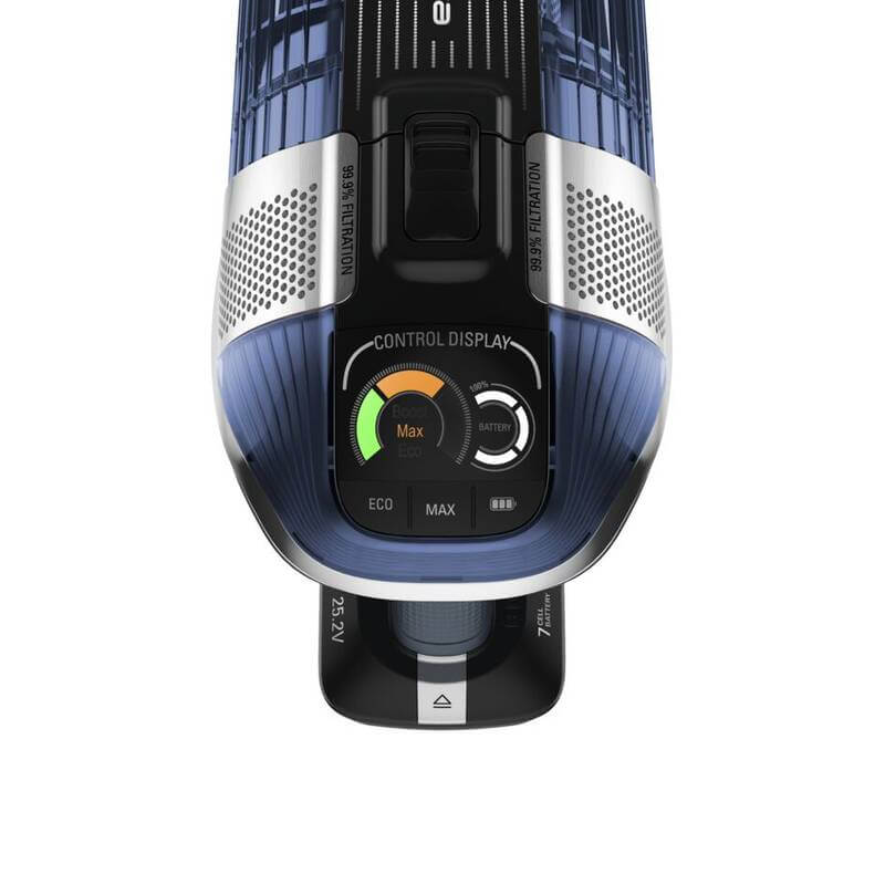 Vysávač je vybavený motorom DigitalForce so silou 130 W s úrovňou hluku iba 82 dB. Automaticky upravuje rýchlosť aerodynamických lopatiek pre optimálne sanie. Vďaka 25,2 V Li-Ion akumulátoru je možný ľahký pohyb v priestore. Silná batéria ponúka až 45 minút prevádzky. Stlačením patentovaného tlačidla Boost dosiahnete intenzívny výkon. Flexibilná trubica je skvelým riešením na jednoduché upratovanie pod nábytkom. Na jednoduchšie uskladnenie aj oddych pri upratovaní slúži funkcia Stop & Go, vďaka ktorej kefa s trubicou samostatne stojí.